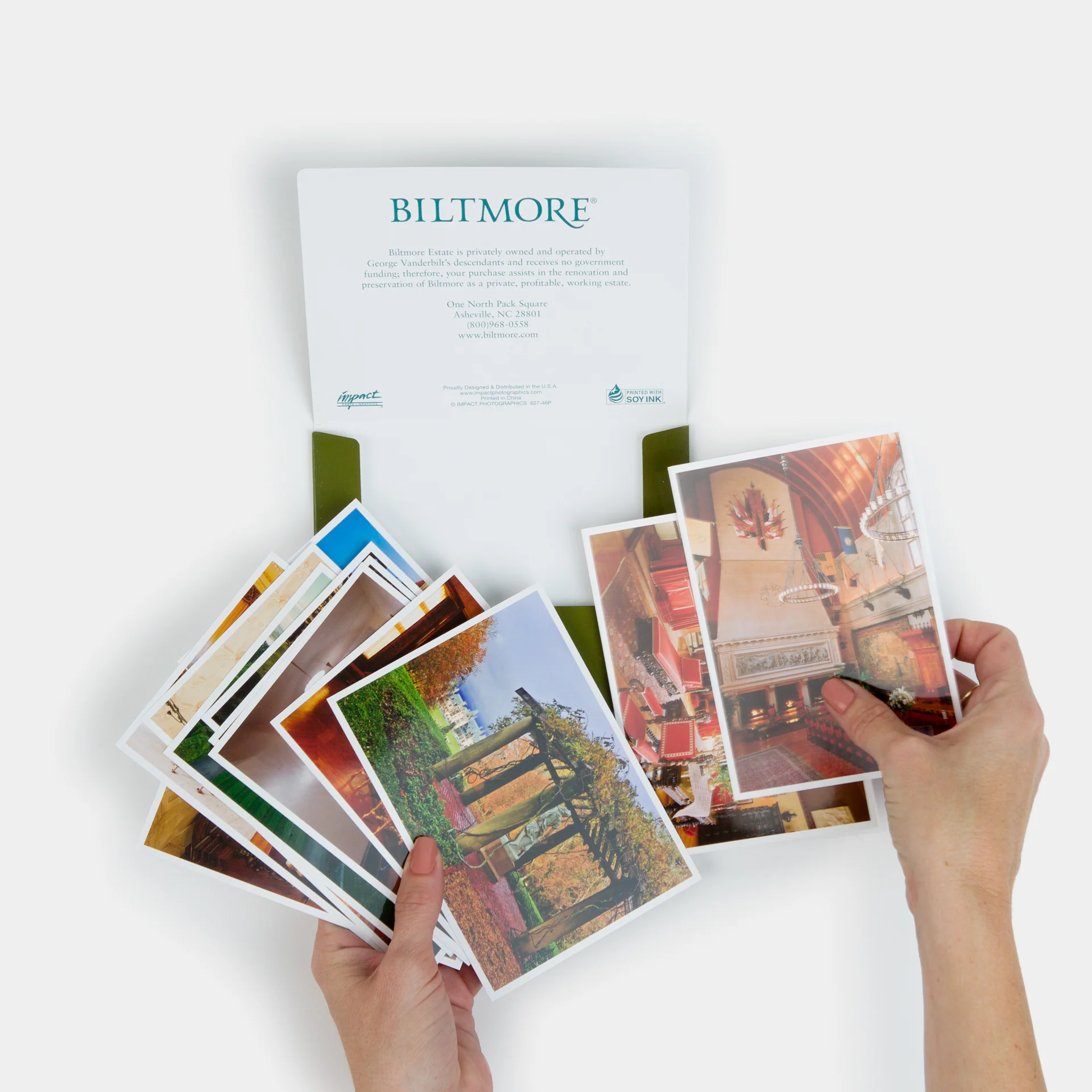 Commemorate your trip or share the beauty of BiltmoreĀ® with friends and family with our collection of 12 postcards. Each postcard features a different photograph of either the grounds outside or the rooms within the house. Display these high quality photos throughout your home or use them to entice family and friends to come with you on your next visit to Biltmore.